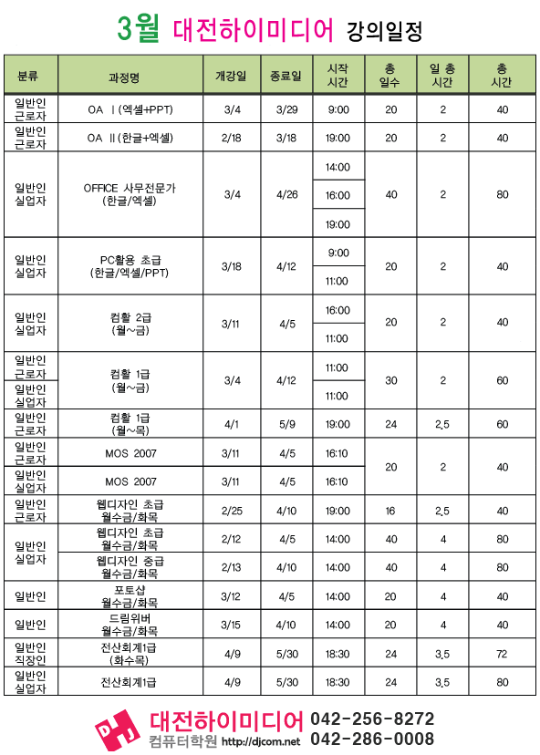 [정규개강]2013년 3월 개강일정입니다.(대전캠퍼스)